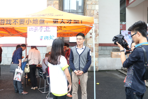 在报道的任何一个环节都有志愿者们的身影。热情的微笑,耐心的讲解,真切的关怀,虽然下着雨,但是数艺系迎新服务站上志愿者们仍乐此不疲的工作着。