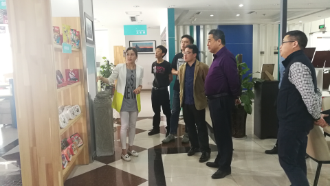 应四川海诺优创品牌营销策划有限公司邀请,2018年4月26日,数字艺术系系主任张兵,系党总支书记李成家、艺术设计教学团队主任陈志刚、数字媒体教学团队副主任乔付军、产教融合行政助理钟文五人前往四川海诺优创品牌营销策划有限公司,就文创设计校企合作进行考察和会谈。海诺优创董事长、策划总监、教育总经理、教育副总经理、教育技术总监等进行了热情会谈。青羊区文创管委会科长石家伟代表管委会出席会谈。
