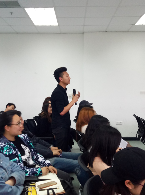 为提升数字艺术系国际合作意识,加快数艺系国际合作进程,在学院国合部和人力资源部、教务部等各级部门和领导的支持下,2018年4月10日星期二下午两点,数艺系《设计思维与文化创意》国际选修课程在C8-306教室正式开班,课程由来自宝岛的张哲荣老师讲授,参加的人员主要为数字艺术系艺术设计团队青之工作室、禾工作室、零壹设计工作室的同学。