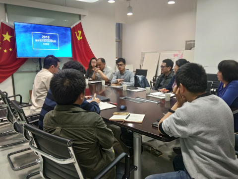2018年4月18日星期三下午4.00,数字艺术系与来本校授教的台湾老师在C8-202会议室开展交流会。出席本次会议的成员是以张兵主任、赵璧书记为首的数字艺术系教学团队和以张哲荣老师、江明锦老师为首的台湾教学团队。