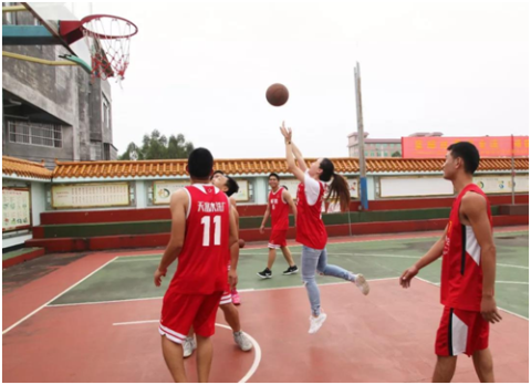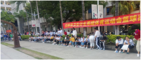 团队开展采风活动期间,正好赶上了新圩村篮球邀请赛与玉林医学院的比赛,观看了两场十分精彩的比赛,激烈的比赛和热情的拉拉队使团队深切感受到玉林人对篮球的热爱,以及他们对健康生活的追求。
